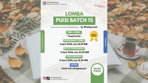 Yuk ikutan event kepenulisan GRATIS dari Halo Penulis Group. Kamu akan mendapatkan benefit uang tunai, sertifikat resmi, pengalaman berharga dan buku yang diterbitkan secara GRATIS. Sudah ribuan penulis yang karyanya dibukukan di Halo Penulis Group. Sekarang waktumu!